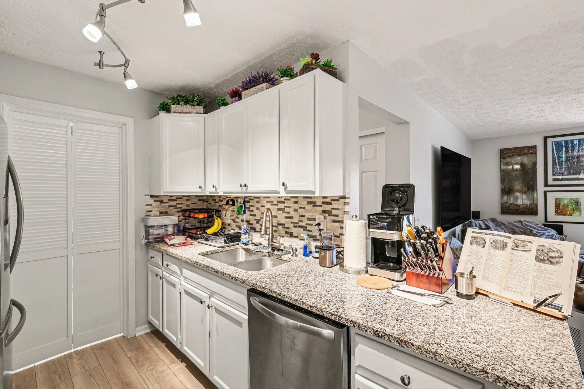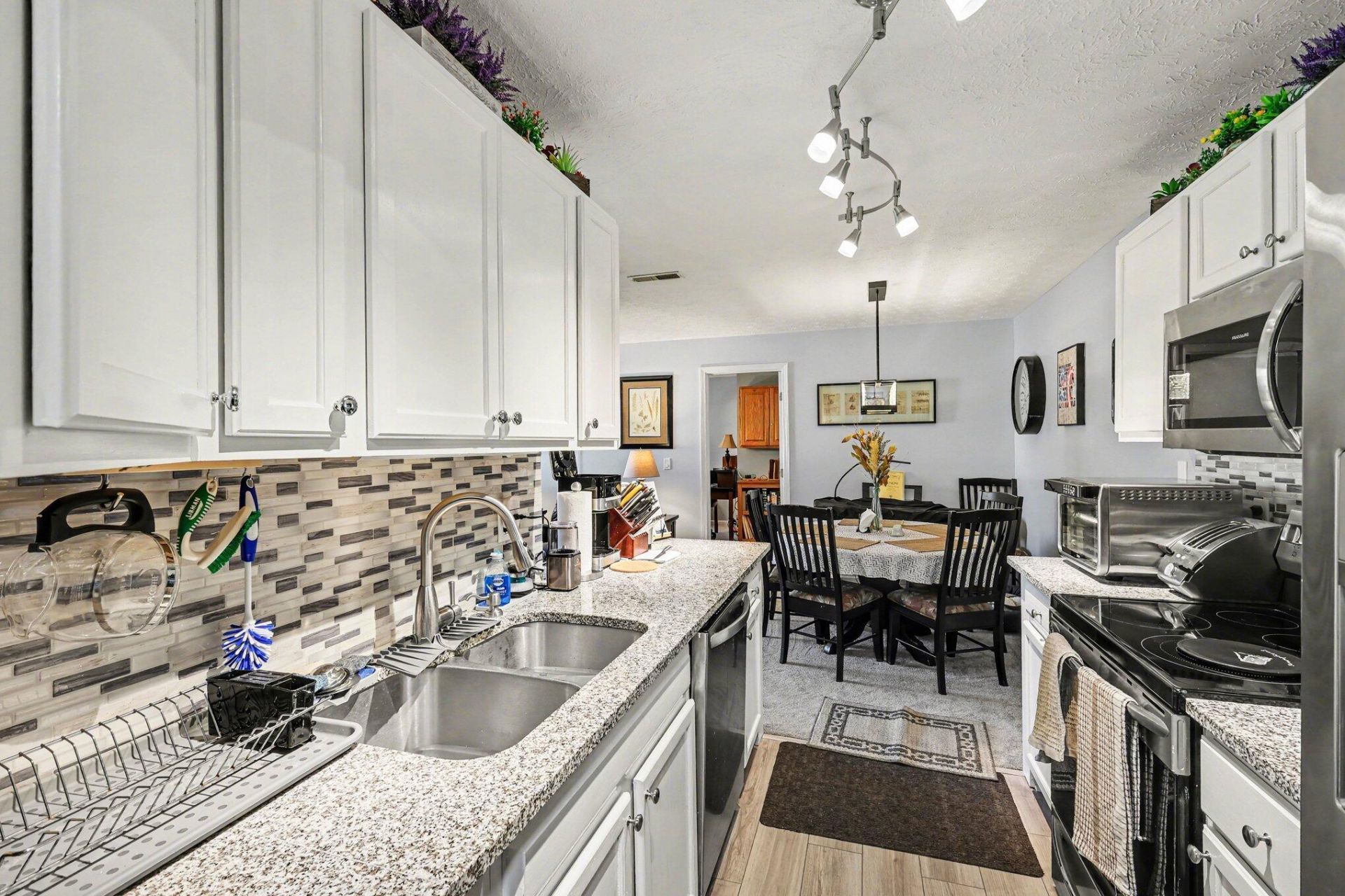 Welcome to this beautifully updated and thoughtfully enhanced 2 bedroom, 2 full bath handicap accessible condo in the desirable Sherwood Lakes community in Florence, KY. This middle level unit offers true no-step living, with zero steps from the sidewalk to the front door for effortless accessibility and includes a garage. Inside, a welcoming entry foyer leads into a spacious, light-filled living room with direct access through a freshly installed sliding door to your private balcony overlooking serene lake views, perfect for relaxing or entertaining. The home features numerous updates, including newer carpeting throughout, durable laminate flooring in the kitchen and Anderson insulated windows and patio door. The kitchen is both stylish and functional, complete with a cozy breakfast nook ideal for everyday dining. Both bedrooms are generously sized and feature large walk in closets, offering ample storage. The primary suite includes a private en suite bath with a thoughtfully added bidet for enhanced comfort. Blending modern updates, a spacious layout, accessibility, and a peaceful lake setting, this move in ready condo offers low maintenance living at its finest.