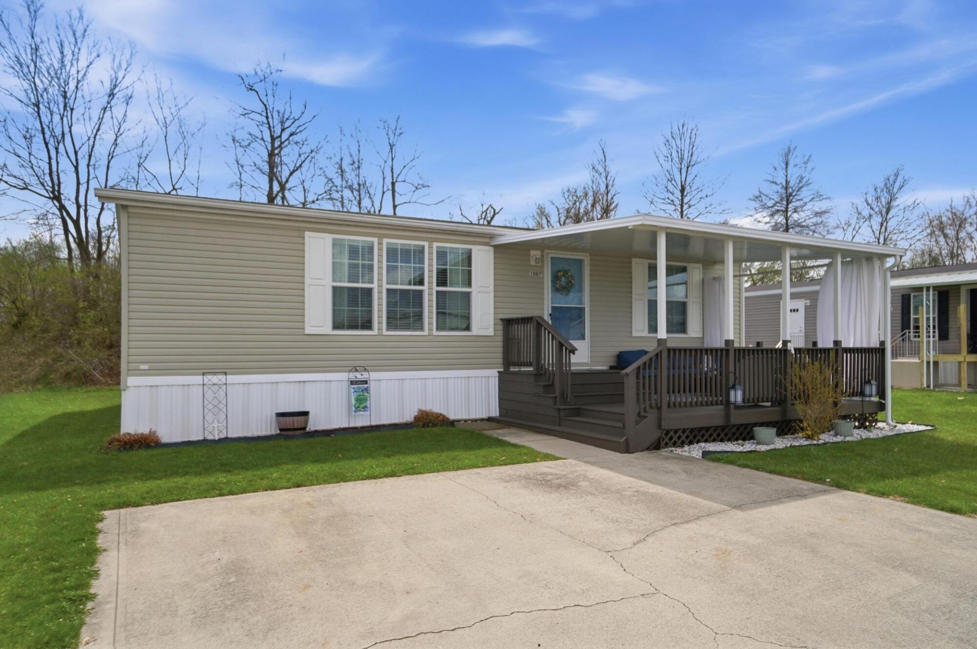 Welcome to 1100 Thornwood Drive SW Lot 1007 in Heath, Ohio--an extremely well-maintained, move-in ready double-wide in the desirable Ramp Creek Community offering 2 bedrooms, 2 full bathrooms, and convenient one-floor living. This home is perfect for buyers seeking affordable housing in Heath, Ohio with low-maintenance living and access to community amenities.Inside, you'll find a clean, well-cared-for interior with a functional layout. The home features a spacious living room, a kitchen with ample cabinet/cabinet space, and desk. The primary suite includes a private full bathroom and a generous closet, while the second bedroom and full bath provide additional flexibility for guests, a home office, or everyday living. Step outside to enjoy a large, beautifully maintained deck complete with an awning and privacy curtains--perfect for relaxing, entertaining, or enjoying quiet outdoor time. The property also includes a storage shed for tools and equipment, along with a concrete parking area.Located in the Ramp Creek Community, residents enjoy access to a park, clubhouse, and basketball court, adding to the appeal of this low-maintenance lifestyle. The location is ideal--less than 15 minutes to Buckeye Lake for boating, dining, and recreation, with easy access to I-70 for commuting to Columbus and surrounding areas.If you're searching for a move-in ready mobile home in Heath Ohio, a double-wide in Ramp Creek Community, or affordable one-floor living near Buckeye Lake with easy highway access, this home is a must see!