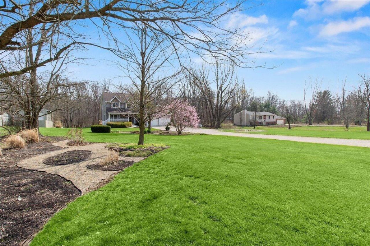 Don't miss this beautiful 4-bedroom, 2.5-bath home located in a highly desirable school district! A covered front porch welcomes you into the foyer with convenient access to the garage, half bath, and a beautiful open staircase to the upper level. The formal living room flows seamlessly into the formal dining room, creating a wonderful space for entertaining. Across the rear of the home, you'll find the recently renovated kitchen featuring granite countertops, stainless steel appliances, a built-in wine fridge, and first-floor laundry. The kitchen opens to the cozy family room with fireplace and overlooks the large rear deck and private side patio. Upstairs, the owner's suite offers a private bath with soaking tub and WIC. Three additional bedrooms and a full supporting bath. The full basement provides excellent flex space including a private office, recreation room, safe room, and mechanical/storage area. Outside, you'll love the extensive landscaping with pocket parks, raised garden beds, and a decorative pond. Completing the property is an impressive 30'x40' pole barn with electric and concrete flooring.