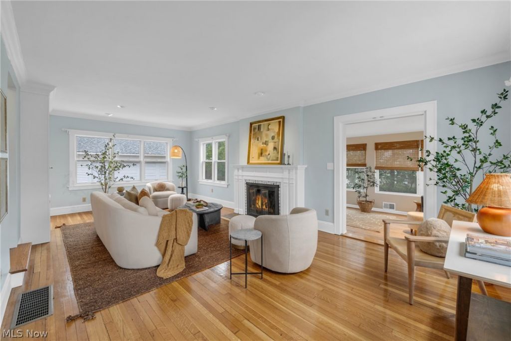 Located in one of Rocky River's most convenient, pedestrian-friendly neighborhoods, this beautifully maintained home blends comfort, convenience, and thoughtful updates throughout. Freshly painted in light, modern tones, the interior feels bright and welcoming from the moment you step inside. Hardwood floors flow through the main living spaces, adding warmth and character, while the functional layout offers everyday ease and flexibility. The living room enjoys a charming fireplace and sharp built-ins and a sunroom offers a great space for an office or playroom. The formal dining room has ample space for entertaining and is serviced by a kitchen with warm wooden cabinetry and ample space and storage. The second level features three bedrooms and a full bath, creating a private and comfortable retreat, while the finished lower level adds valuable additional living space, complete with a second full bath and laundry area, perfect for entertaining, a home office, or a workout space. Additional highlights include dual-zone heating and cooling for year-round comfort, and a newer, oversized garage equipped with an electric car charger. With its ideal location near shops, dining, and parks, this home offers the perfect combination of lifestyle and livability.