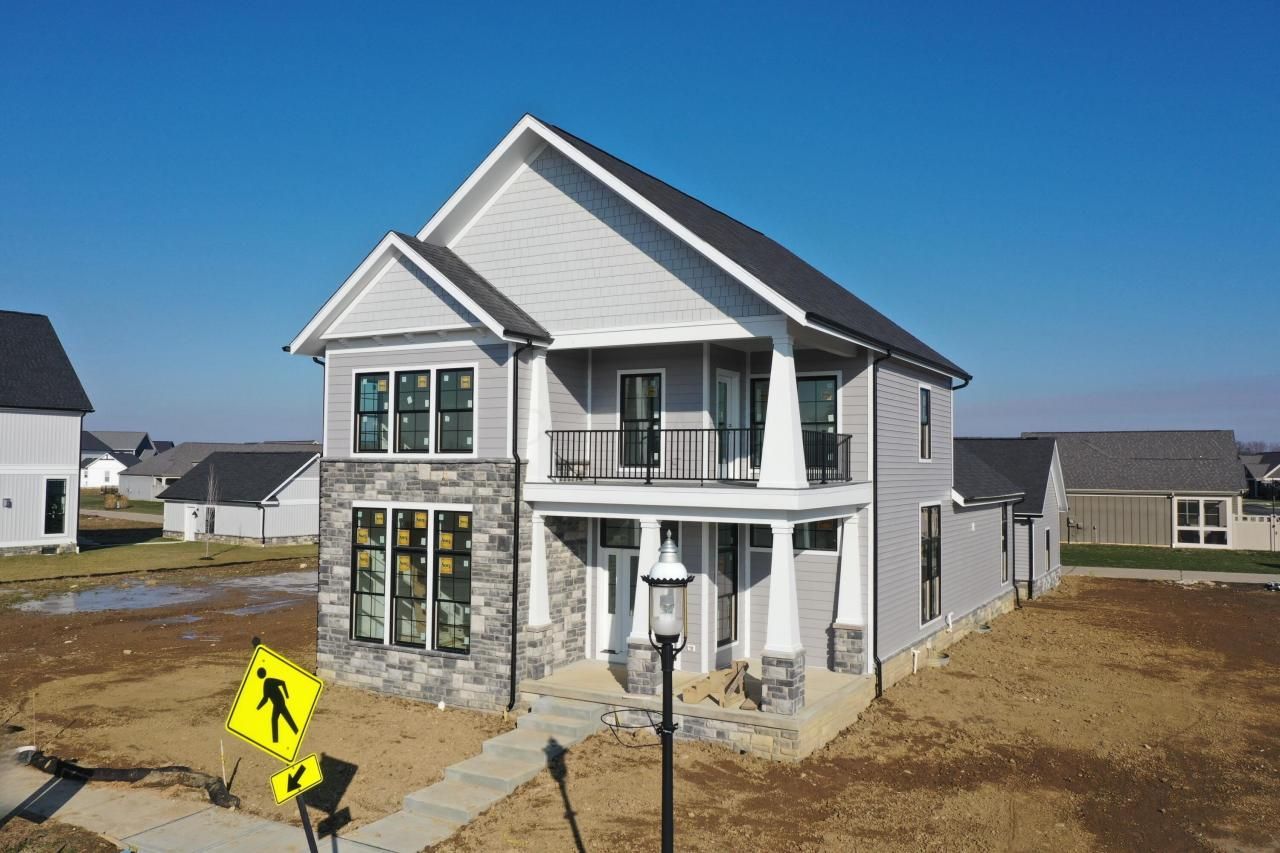 This elegant two-story home blends modern comfort with timeless design, offering bright, open living throughout. Soaring 10-foot ceilings and oversized windows flood the home with natural light, creating an airy, welcoming feel from the moment you enter.Enjoy a first-floor primary suite, featuring a spacious walk-in closet with solid shelving. A dedicated flex space on the main level makes an ideal home office or reading room, perfect for easy living.Upstairs, step out to your covered patio overlooking protected green space, soon to be transformed into a wildflower garden, keeping your views unobstructed.Thoughtful finishes are found throughout, including soft-close cabinetry, quartz countertops, and a well-designed laundry/mudroom with custom built-ins that keeps daily life organized and efficient.The full basement includes an egress window and rough-in plumbing, offering excellent potential for a future bedroom, bathroom, and additional living space.Located within the highly desirable Beulah Park community, residents enjoy pickleball courts, 32 acres of green space with walking paths, a scenic pond, and the West Pavilion for gatheringsâ??all just steps from the restaurants, shops, and charm of historic Grove City.