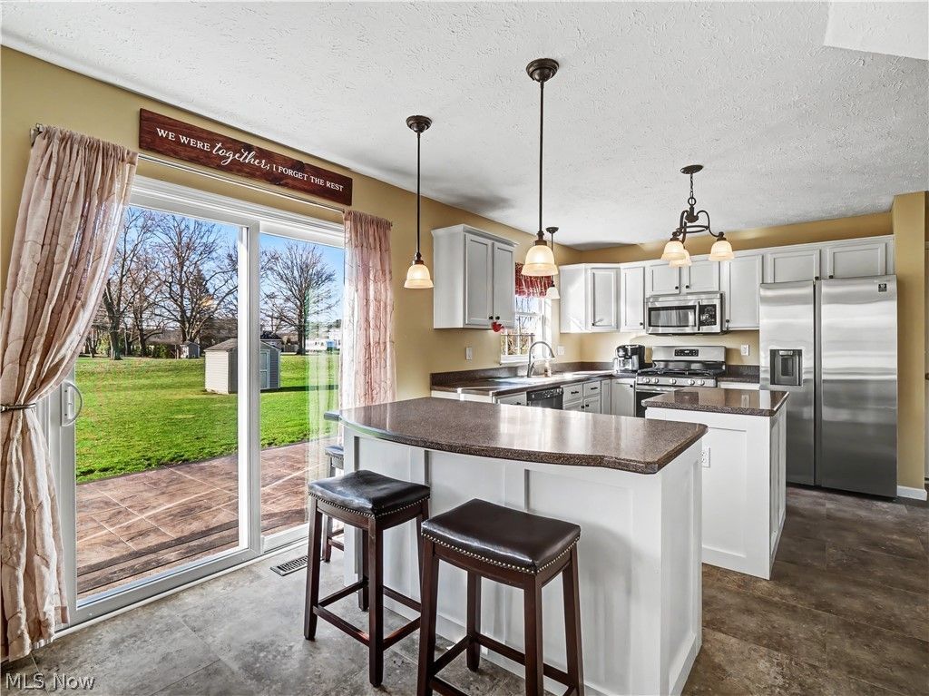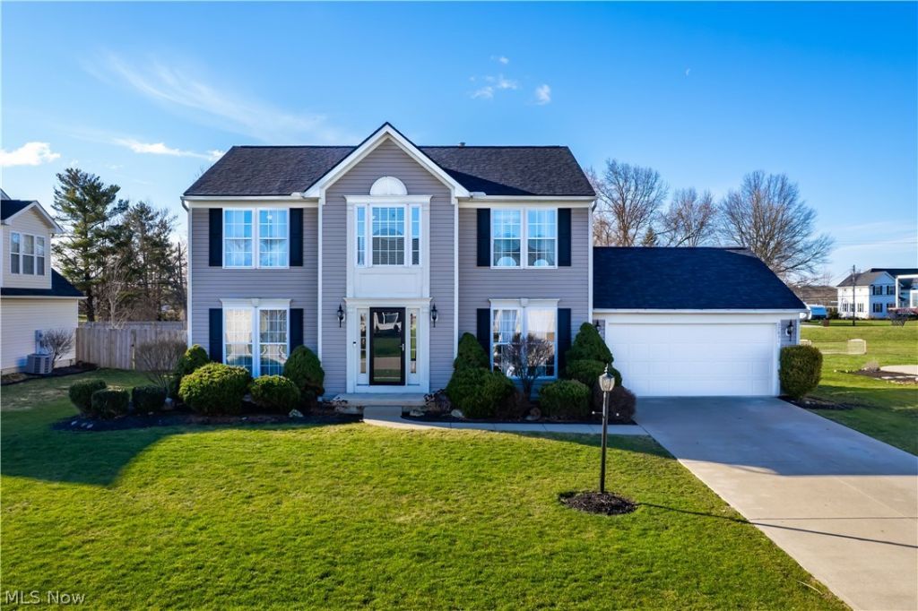 Tucked in desirable Meadow Lakes with no direct backyard neighbors, this 4-bedroom, 2.5-bath colonial offers the privacy and everyday livability buyers are searching for. Step outside to a newly completed stamped concrete patio (2025) and enjoy a backyard setting that feels more spacious than most. Major updates?including roof, furnace, and A/C?provide added peace of mind. The main level is designed for connection, featuring a well-planned kitchen with island seating, stainless steel appliances (all stay), and open sightlines to the family and dining areas?ideal for gathering, entertaining, and daily life. Upstairs, the primary suite includes a walk-in closet and private en-suite bath, while all bathrooms throughout the home have been tastefully updated. TVs and mounting brackets remain for added convenience. The unfinished basement offers excellent storage and flexibility for future living or recreation space. A smart, functional home in a location that's hard to duplicate?schedule your showing today.