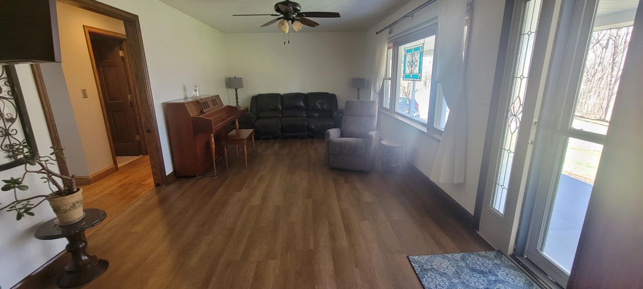 Tucked away on nearly 2 acres of mostly wooded land, this spacious 4-bedroom, 2-bath home offers over 2,000 square feet of comfortable living in a peaceful, quiet setting. Inside, you'll find an updated custom kitchen featuring ample cabinetry and a convenient pantry, perfect for both everyday living and entertaining. The home boasts new flooring in the living room. While the home includes three additional bedrooms, hallway, and the dining room showcases its original hardwood floors for added charm.Enjoy cozy evenings by one of the two fireplaces, and take advantage of recent updates including a new hot water tank, septic aerator pump, and garage door opener. Fresh paint throughout gives the home a clean, move-in-ready feel. Step outside to a fenced yard, ideal for pets or outdoor gatherings, and relax in the hot tub, which conveys with the sale. Additional features include two storage sheds and a garage equipped with its own wood burner for year-round functionality.One of the sellers is a licensed agent in the State of Ohio.