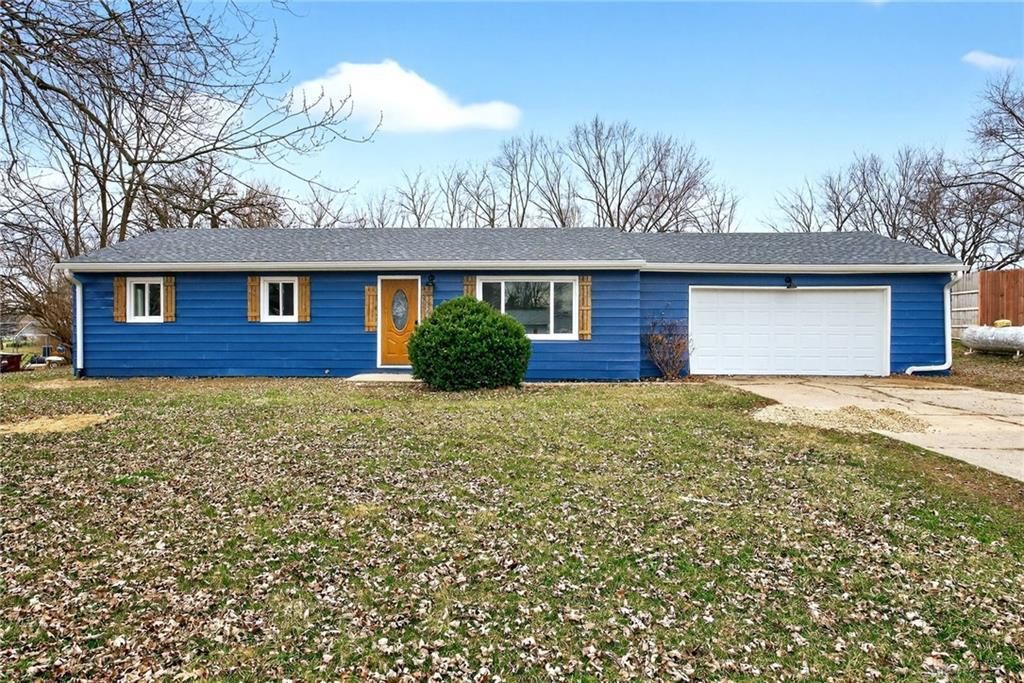 Welcome to 5265 Robinson Vail Rd, a stunningly reimagined ranch that sits on over a half acre in Franklin City Schools. From the moment you arrive, the striking blue siding and custom rustic wood shutters set this home apart. Step through the decorative glass entry door to discover an open, light-filled living space anchored by meticulously refinished original hardwood floors that glow under the natural light of the large picture windows. The heart of the home is the brand-new kitchen, featuring crisp white cabinetry, dramatic marble-look countertops with black veins, and a classic herringbone tile backsplash, all accented by modern matte black hardware. This same high-end finish carries into the fully renovated bathroom, which boasts a vertical subway tile shower and a coordinated quartz vanity. Every inch of this home has been updated, from the fresh neutral paint and sleek trim to the durable new tile flooring that leads to the backyard via sliding glass doors. Complete with an attached garage with new epoxy floors and a spacious level lot, this turnkey property is ready for you to call it home.