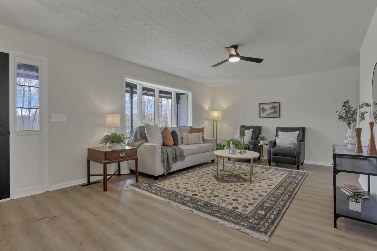 Positioned just outside downtown Pataskala and adjacent to Broadview Golf Course, this sprawling brick ranch offers a rare opportunity to own 4.46 acres in a highly desirable location. Acreage of this size so close to town is increasingly hard to find, making this an ideal option for buyers seeking space and privacy while still enjoying close proximity to golf, dining, and everyday conveniences.This home offers 3 bedrooms and 2 full bathrooms, including a primary ensuite, with a functional single-level layout. Step inside to a spacious living room with all new LVP flooring throughout, complemented by fresh interior paint, new light fixtures, switches, outlets, and door hardware.The primary suite is generously sized and opens to an open and airy four-season room filled with natural light and finished with stylish painted flooring. The ensuite bath has been fully updated with new tile, vanity, fixtures, lighting, and a new shower pan. The oversized hall bath also features new tile, updated cabinetry, new countertops, fixtures, and a new bathtub. Two additional bedrooms offer ample space and double closets.The oversized country kitchen features new granite countertops, a center island, beautifully painted two-tone cabinetry, new tile, updated fixtures, and a bay window eat-in area overlooking the expansive backyard. Just off the kitchen is a convenient first-floor laundry room with all new cabinetry.A cozy family room with a fireplace leads to a large screened room and deck. Additional highlights include an attached oversized 2-car garage, a large pole barn with electric and overhead door, a detached garage with new roof, added attic insulation, and HVAC and water heater (2019).
