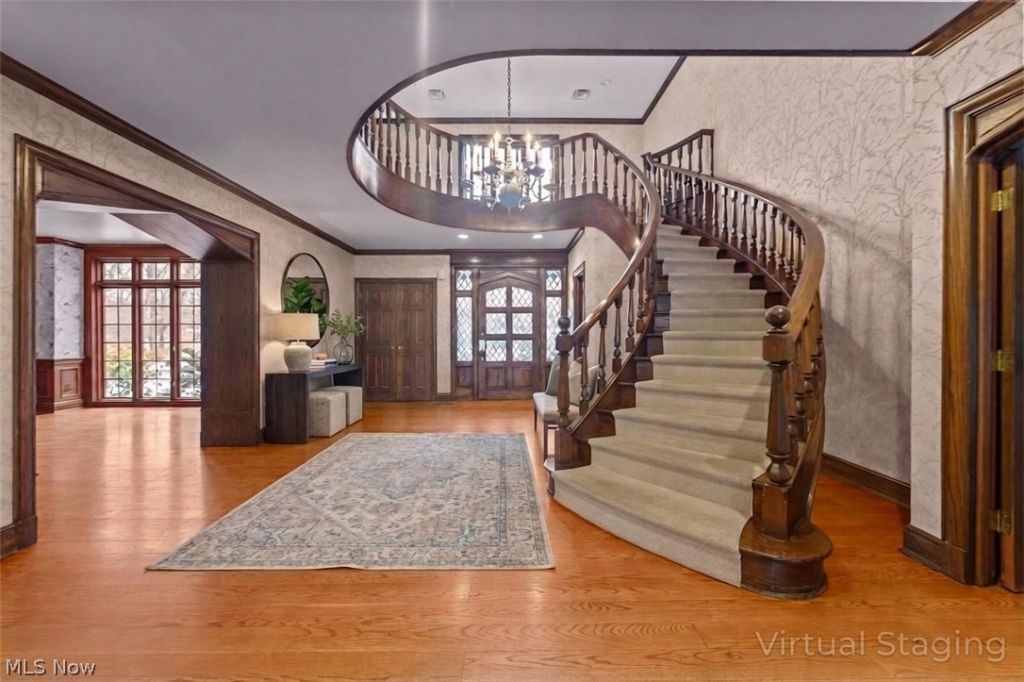 A remarkable gated estate located on one of the most sought after streets in the Chagrin Valley! This 7+ acre compound has a long private driveway which is bordered by your own private lake offering a serene setting second to none! The grand english manor house is perfect for entertaining and offers remarkable quality and attention to detail! A two story foyer with a spectacular curved staircase sets the mood for this house! Located off of the foyer is the impressive formal dining room with built-in display cabinets, the great room, and the handsome paneled library! The great room is impressive with a two story beamed ceiling, handsome stone fireplace, and magnificent windows overlooking the breathtaking backyard. The library is simply magnificent with a wet bar, fireplace, and a private turreted staircase which leads to the lower level. You will find an updated gourmet kitchen as well as a glass walled sunroom on the first floor as well. A front and rear staircase lead to the expansive second floor which features 4 bedroom suites, a private den, and a gracious landing. The owner's suite is private and offers a gorgeous bedroom area with fireplace, huge walk-in dressing room with custom built-ins, and a truly impressive bathroom. The walk-out lower level has additional entertaining space including a pub room with bar and fireplace, a huge club room, and an exercise room with access to a full bathroom. Summer's will be enjoyed entertaining on the rear patio or deck, swimming in the in ground pool, or playing a game of tennis. There are glorious gardens, lovely foliage for privacy, and an expansive rear motor court for parking. If you are looking for a private estate on the door steps of Chagrin Falls, then this is the property for you.