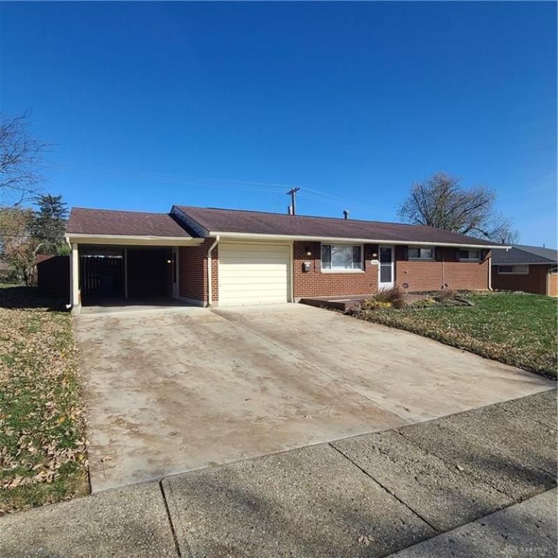 Welcome home to this inviting 3-bedroom, 1-bath brick ranch in the thriving Huber Heights community — a fast-growing area known for its new shopping centers, restaurants, and entertainment options, all with convenient highway access. Step inside to find a bright, open layout featuring modern wood-style flooring throughout most of the home. The updated kitchen includes warm oak cabinetry, stainless steel appliances, and an eat-in dining area that’s perfect for casual meals or hosting family and friends. The dishwasher, range, and refrigerator all stay with the home, offering move-in convenience. The former garage has been thoughtfully converted into a spacious bonus room, ideal for a family room, home office, or entertainment space — providing extra flexibility for today’s lifestyle. The refreshed bathroom offers neutral tilework, updated fixtures, and a clean, modern look. Each bedroom features comfort and natural light, making the most of every square foot. Outside, enjoy a large wooden deck overlooking a fenced backyard — perfect for cookouts, gatherings, or relaxing evenings. A carport and extended driveway provide plenty of parking, while a large storage shed adds extra space for tools and outdoor gear. This home offers a blend of comfort, convenience, and value — perfect for first-time buyers or anyone seeking one-level living in an up-and-coming neighborhood.