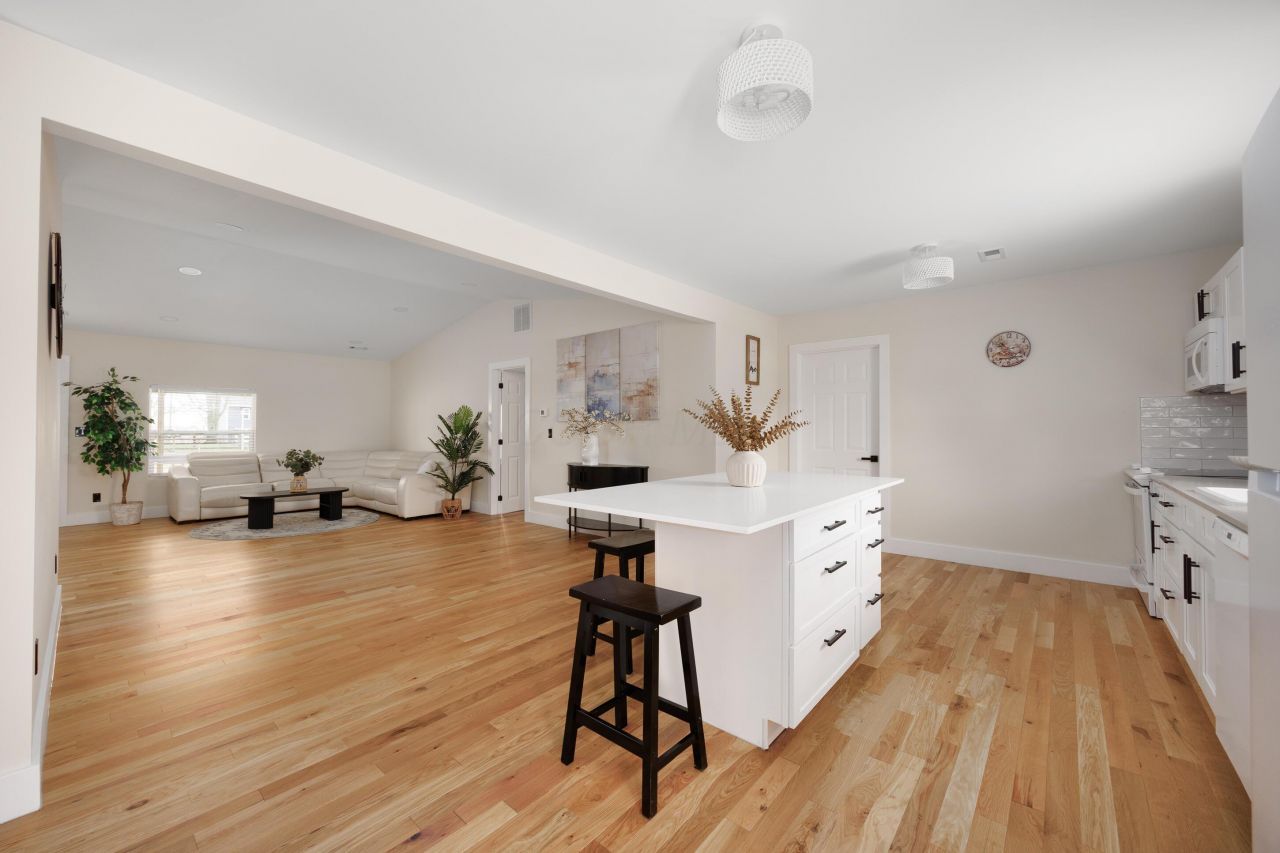 Completely remodeled inside and out, this 4-bedroom, 2 full bathroom home is move-in ready. The open layout features vaulted ceilings in the main living area and hardwood floors throughout. The updated kitchen offers new cabinetry, quartz countertops, and a tiled backsplash. Both bathrooms have been fully renovated with tile finishes and brand-new vanities. Major updates include a new HVAC system, water heater, water softener, and a newly drilled well this year. A beautifully updated home with all the big-ticket items already taken care of.