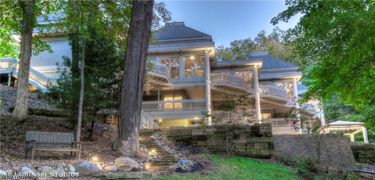Architecturally stunning custom home situated on 4.7 plus acres accented by stone walls, pond and wooded views. The open design features imported polished limestone floors, custom cherry built-ins, extensive use of granite, multiple fireplaces and stained oak flooring. The Architectural Justice updated kitchen includes S5 appliances, coffee bar, multiple pantries, custom center island with layered lighting and floating glass serving bar. Master suite is a true escape with a polished stone fireplace, walk in closets, soaking tub, glass enclosed rain shower, dual vanities and in suite laundry. Lower, walk out level is complete with a climate-controlled wine storage and tasting area, custom home theater, Roman style spa, and much more. Park-like exterior offers 2 patios, custom grill area, fire pit, 20? bar, dining pavilion, fountain and sun deck. Located along the edge of the Cuyahoga Valley National Park, this home offers easy access to urban and cultural amenities while retaining a rural atmosphere.
